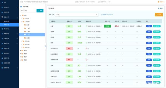 因为生产现场较多且大部分较为分散的情况,对每个生产现场做到依靠人工实时监控是一件需要投入大量资源且很难落实的事情。实时监控也就成为了智慧水务系统的必备的基础功能之一。智慧水务系统采用组态软件,采集传感器.html'>传感器、高性能PLC等共同搭建集散型控制的自动监控系统实现对现场情况的监测在系统监控主页,展示系统所有关键数据概况,让使用人员对现场情况有及时的了解判断。