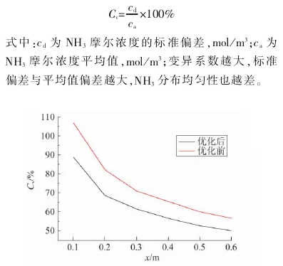 2.3 优化前后 NH3分布均匀性对比分析