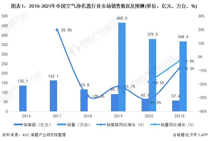 导读:预计2021年中国净化.html'>空气净化器销量368.4万台,同比下滑2.9%;销售额57.4亿元,同比下滑8.3%。