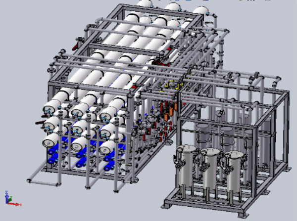 胶体污染主要发生在超滤膜元件上,如果反渗透进水中铁、锰、硅等含量超过一定值,则在反渗透膜元件也会形成污堵,因此,必须控制进水中的铁、锰、硅等含量。