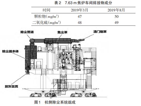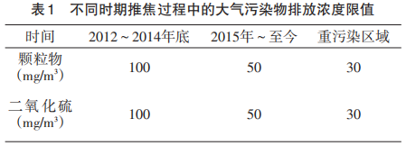 在传统的炼焦工艺过程中,焦炉在炼焦生产时或多或少会向大气环境排放烟尘。其中,焦炉在推焦车将焦炭推出炭化室过程中会产生大量黄色烟雾,其热辐射强,二氧化硫浓度高;推焦时排放的污染物质占焦炉总污染物质的30%~40%[1]。推焦过程中带出的烟尘不仅污染环境,还对现场操作人员的健康产生重大危害。因此,研究推焦通风除尘控制技术对积极改善炼焦作业环境和保护环境具有重要意义。马钢7.63 m焦炉于2007年投产,焦侧除尘配置为地面除尘站,机侧除尘选用机载除尘,机侧除尘基础参数均是根据当时炼焦化学工业污染物排放标准设计。通过表1可以看出环保要求日益严格,同时焦炉炉龄在不断增长,焦炉机侧除尘设备的原有设计参数已经远远满足不了现在国家的环保要求。此次准备对机侧除尘进行改造。为了有效收集机侧烟尘,先根据现场实际情况进行研究探讨[2]。