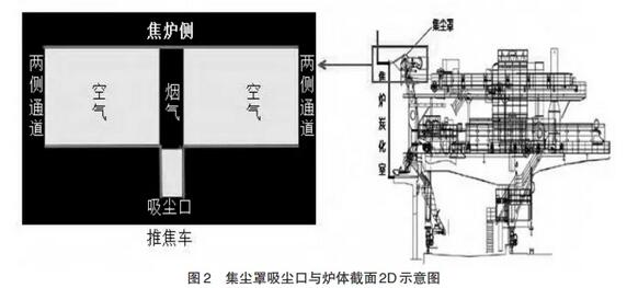 机侧除尘现状及存在问题7.63 m焦炉机侧除尘为机载除尘。除尘系统主要包括集尘罩、清门烟罩、除尘管道、除尘本体、放灰装置。除尘器放置在推焦车二层平台,并设置跟随推焦车一起移动的集尘罩。当推焦车移动到生产炉号,集尘罩向上展开,除尘风机.html'>风机先低速启动,收集炉门处散发的烟尘;当摘取炉门或平煤前,除尘风机高速启动,收集作业时炭化室散发的烟尘、部分荒煤气焦炭和可燃气体燃烧产生的废气、焦炭破碎落入尾焦斗产生的烟尘以及清门时产生的青烟。