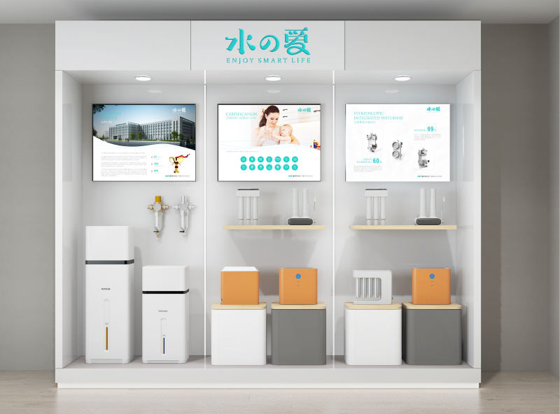 在支持经销商方面,水爱净水设计并储存100组标准高端烤漆板展柜,便于网点迅速上样,统一终端形象,提升终端竞争力。