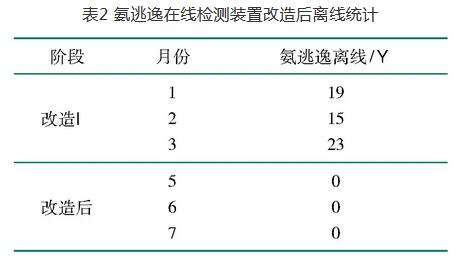 改造后的氨逃逸监测装置对光率大幅提升,接收端不再受到烟道震动及受热膨胀的影响,消除了氨逃逸在线监测数据离线故障,提高了设备可靠性,改造后在线监测装置离线情况如表2所示。
