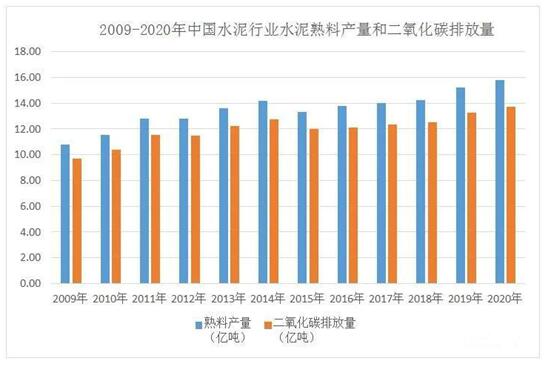 图2 2009-2020年中国水泥行业水泥熟料产量和二氧化碳排放量