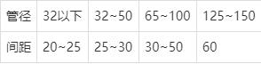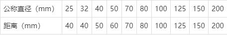 ①管道公称直径为10mm~25mm时,应小于或等于40mm;