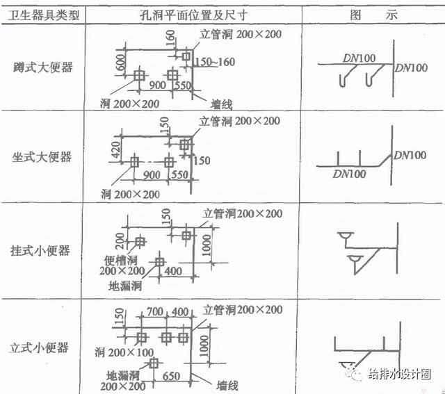 注:如想知道更多关于常用卫生器具排水支管预留孔洞位置与尺寸内容,可购买《管道工长速查》(曲德仁主编 化学工业出版社出版)第144页表3-41