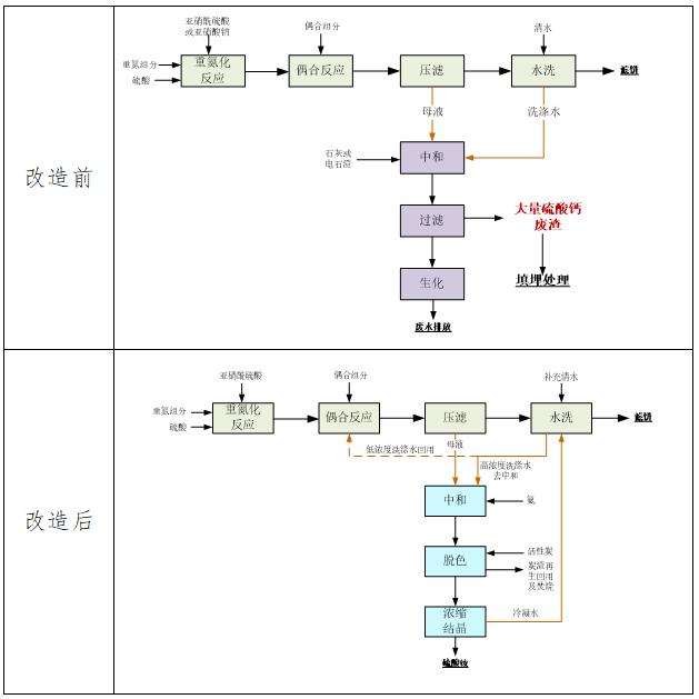 龙盛集团投资6.3亿元,将原来每吨染料产生90-120吨酸性废水的工艺,改造为接近“零排放”,使单位产品废水产生量下降95%,单位产品废渣产生量下降96%,减少硫酸钙废渣14.4万吨/年,回收副产硫酸铵产品7万吨/年,获得直接经济效益3亿元/年。该项目已被列入国家工信部清洁生产示范项目(图2)。