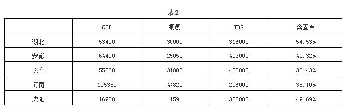 超浓浓缩液是一种高盐、高COD、高氨氮复杂的废水(如下表2),此种废水是垃圾渗滤液多步物化法和生物法提浓得到的,已经难以再继续处理下去了,本文将针对此种超浓浓缩液提出处理技术和研发方向,彻底解决垃圾渗滤液处理问题。列举国内几个经典垃圾填埋场中的超浓浓缩液指标见表2。
