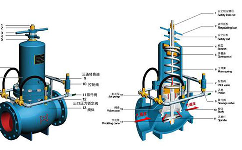 这时可从检查比例减压阀设计安装位置是否合理着手,认真检查管网系统是否存在等位倒虹管现象,即分区的输出管路标高相近。此类情况在主、副楼同一屋顶水箱,下给水供水系统中很容易出现。发现这些问题,可以考虑把比例减压阀安装位置提高一个层面(不能提得太高,必须顾全分区内用水设备的承压规范要求);也可在主、副楼内,分设两组独立的比例减压阀给水系统。如图1所示(这类故障一般发生在静压供水系统)。图1减压阀设计安装位置改进2)减压阀的安装位置应保证调试、观察和维修方便。安装在管道井中的减压阀,应在其相应位置开检修口。3)在安装前应清洁管道,防止杂物堵塞减压阀。减压阀前后应设阀门。减压阀前应装Y形过滤器(主阀自身设置过滤器者除外),滤网宜采用20目~60目的铜丝网;减压阀后应安装橡胶曲挠接头,以利于检修拆卸。减压阀组的前后应各装一只压力表,便于观察减压阀的工作状况以及滤网的堵塞程度。4)减压阀不应有气堵、气阻等现象。设有减压阀的给水系统的立管顶端应设置自动排气阀。5)每年需对过滤器进行定期检查3次~4次,及时清除污秽。有些可调式减压阀,其主阀或者导阀自身设置过滤器,同样需要定期拆洗滤芯。6)互为备用的减压阀组宜一个月轮流交换一次,搁置时间过长减压通道死水结垢,减压元件阀芯会卡住失效。消防给水系统的减压阀后安装泄水阀,定期放水,防止长期不用结垢失灵。7)运行中应及时排除管道中的积气,防止气蚀现象发生,必要时增加自动排气阀。8)使用一定的年限后,需调换易损件。如活塞式减压阀的阀芯与阀体间的平面密封橡胶件损坏;薄膜式可调型减压阀主阀膜片有裂痕和O形圈损坏;比例式(活塞型)减压阀阀体上的透吸气小孔如出现滴漏不止,表明阀芯上几挡O形密封圈已经磨损,要更换密封件。6结语实践表明:应用减压阀的给水减压系统占用空间小、技术特性稳定、压力比调节灵活、使用寿命长、维护管理便捷。但如何保障高层建筑减压阀给水系统的正常工作,使高层建筑用户获得良好的供用水环境,并确保建筑内消防给水系统发挥应有的作用,离不开对减压阀给水系统科学有序的维护管理。因此熟悉系统工作原理,掌握正确管理保养、操作排故知识和技能,对相关工作人员显得特别重要。高楼冷热供水减压阀选型安装不锈钢减压阀应用范围:不锈钢减压阀区别于黄铜减压阀和铸铁减压阀,不锈钢减压阀更耐腐蚀,更加适合应用一些酸性介质系统,不锈钢减压阀广泛用于水处理,化工,食品机械,蒸汽系统,高层建筑,城市给水管网水压过高的区域,矿井及其他场合,以保证给水系统中各用水点获得适当的服务水压和流量。鉴于水的漏失率和浪费程度几乎同给水系统的水压大小成正比,因此不锈钢减压阀具有改善系统运行工况和潜在节水作用。