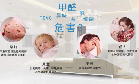 研究表明,甲醛对我们身体健康的伤害大致可分为刺激性、毒性和致癌性。其中刺激性主要体现在引起眼红、流泪、咽喉不适、声音嘶哑、喷嚏、胸闷、气喘、皮肤过敏等问题;毒性可以对我们的眼、肺、呼吸道、神经系统和免疫系统造成影响,长期以往则会引发头痛、头晕、乏力、感觉障碍、免疫力降低,并可出现瞌睡、记忆力减退或神经衰弱等;致癌性主要体现在鼻咽癌、淋巴癌、白血病、细胞核的基因突变等。