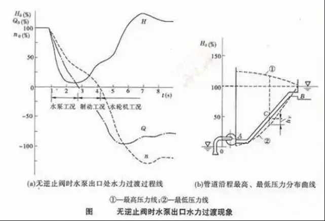 泵站水锤有启动水锤、关阀水锤和停泵水锤(由于突然停电等原因形成的)。前两种水锤在正常操作程序下,不会引起危及机组安全的问题。后者形成的水锤压力值往往很大,从而酿成事故。