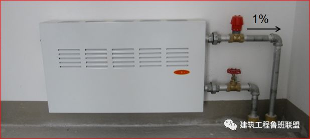 3、阀门与部件的两端,三通横管中部均设置支架,压力排水污废水管道指示与管道类别标示清楚,管道标志色为黑色