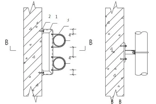 3、图示为一条管道的做法,多条管道时参照此做法