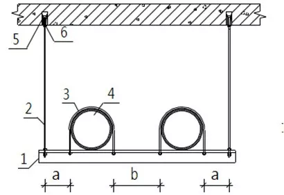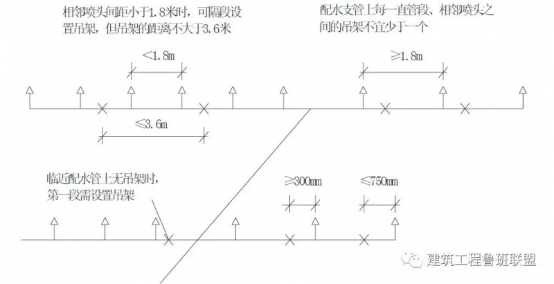 2、当喷淋支管高度大于1000mm时,应设横向加强支架;末端支架与喷头之间的距离为400mm