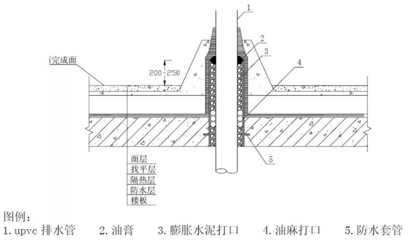 1、套管周围在屋面混凝土找平层施工时,用水泥砂浆筑成锥形阻水圈