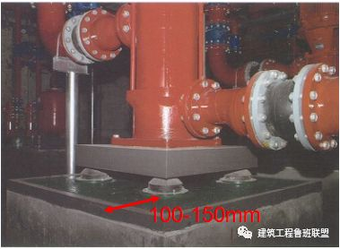 生活水泵房、消防水泵房基础边宜宽出设备底座100-150mm,水泵基础高度宜设置为200mm,