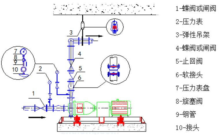 1、水泵的进出口应设软接头
