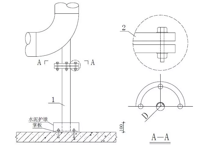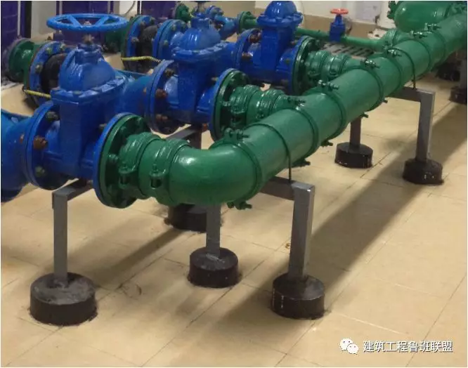 柱管法兰盘距离地面完成面小于等于一米,管道直径为DN100〜150时,柱管为DN50;管道直径为DN200〜250 时,柱管为DN65mm;当设计另有减振要求时,需另考虑设置减振等