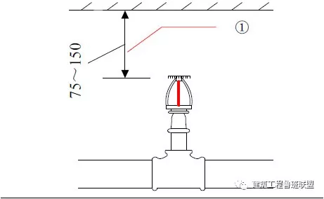 1、直立型喷头安装距楼板顶部距离为100mm
