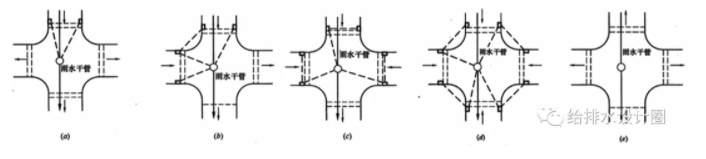 有雨水流向道路交叉口的时候,必须在进入交叉口之前设置雨水口进行截留; 而雨水从道路交叉口流出的时候,则不需要设置。