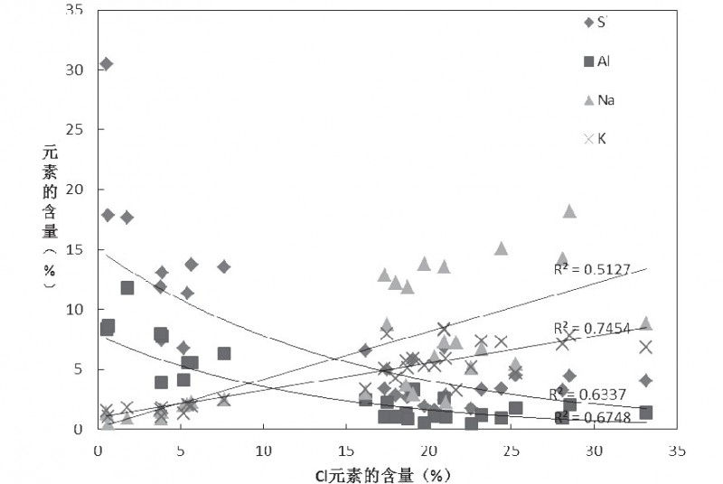 图2 垃圾焚烧飞灰中Cl与其他元素的含量关系图