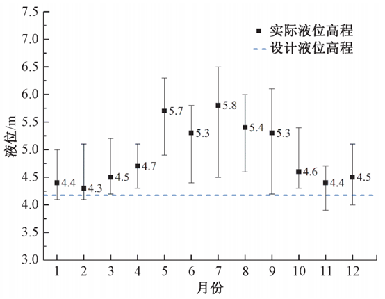 根据2018年运行数据,中途污水提升泵站前池的实际运行水位比设计水位的4.2 m显著偏高,在设计运行工况下,年平均液位为4.9 m,全年超设计水位运行天数达334天,同时导致上游新桥河和上寮河沿河截污系统的雨季溢流现象频发,致使水质恶化。此外,下游水质净化厂前的台封污水提升泵站也存在前池液位偏高现象,尤其在5月至10月深圳市的雨季期间,水位情况和波动幅度尤为异常。