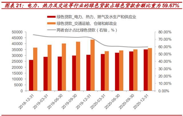 我国绿色金融体系以间接融资为主。根据中国人民银行披露,截至 2020 年底,本外币绿色贷款余额约为 12 万亿元,同比增速为 16%。其中, 电力、热力及交运等行业的绿色贷款占绿色贷款余额比重为 59.67%。 我国发展绿色金融以来,致力于建立起校正环境污染和温室效应等负外 部性的经济机制,对企业减轻环境耗损的经营行为给予相应的激励,最 终阻断企业的环境套利行为。我们预计,按照 16%的增速发展速度保持 不变,绿色金融规模在未来五年达到 100 万亿。