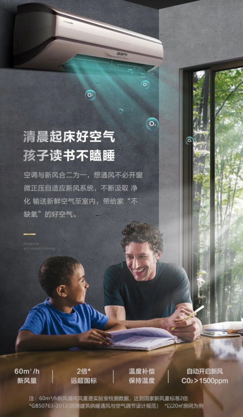 当然,就如上文所述,空调领域的玩家们早就注意到了空调与新风功能的结合。海信、格力、美的、TCL都有推出壁挂式新风空调,其中海信做到了较广的价位段覆盖,从3000元以上一直延续到8000元价位,最顶级型号的新风风量同样达到了60m³/h并支持米家相似的二氧化碳监测。
