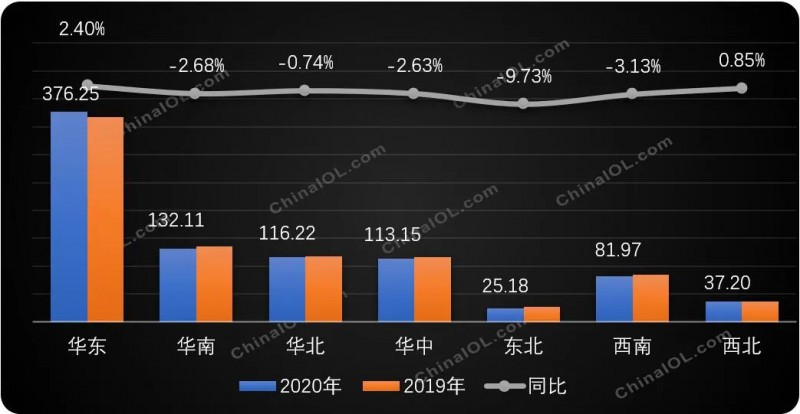 从产品结构来看,多联机以4.35%的同比增长成为中央空调行业2020年后半程持续发力的重要引擎,大型冷水机组表现相对平稳。从区域市场表现来看,疫情冲击下,七大区域多数呈现份额略降的发展态势,仅华东和西北地区实现逆势增长,其中华东市场表现尤为亮眼。华东地区本来就是中央空调的主力区域市场,占比遥遥领先。2020年凭借较好的经济基础带来的抗风险能力与新业态新模式的加码推进,华东地区的发展节奏在短期波动后稳步回升。一方面,数字经济等新基建项目与更新改造市场的持续释放,另一方面,精装修配套与零售市场持续扩张,并在三西线城市加速渗透。在这些利好的合力拉动下,华东地区最终以2.4%的同比增长领涨全域。2019-2020年中央空调内销细分区域规模及走势(亿元)市场规模位居二三位的华南及华北地区保持稳定,以销售金额的微幅波动完成收官。究其原因,主要为以上两个地区的经济复苏态势弱于华东市场,且中小项目市场相对规模较大,地区主导产业结构较为单一等特点令其受疫情影响较为明显,仅有部分基础设施项目在政府主导之下加速推进,需求显现较为稳定。零售及精装配套市场方面,以上两个地区的消费能力受疫情影响相较华东更大,市场恢复速度较慢,加之精装配套的普及程度不及华东地区,在零售及配套市场的挖掘空间有限。华中及西南地区是近些年中央空调行业的潜力市场,但在2020年都出现了下滑。华中地区作为疫情的重灾区,各项隔离措施执行力度较大,复工进程相较其他地区较晚,导致新增项目显现放缓、既有项目普遍延期,市场投资信心受限,最终以2.63%的降幅完成收官。西南地区的增速放缓主要归结于房地产市场的走势疲软引起的零售及配套市场规模下滑,加之新增项目及中小项目的景气度降低导致的需求萎靡,在整体环境的承压制约之下稍显无力。西北及东北的中央空调是份额最少的两个区域。受地区气候及区域购买能力等因素制约,零售市场难见起色,整体市场的增长空间依然由项目市场主导。依托“西咸一体化”、“关中平原城市群”等战略的推进,西北地区的项目市场机遇频现,大型冷水机组的需求规模持续走高,拉动西北地区市场实现逆势增长。东北地区却因疫情的反复不定,经济发展面临更大阻力,市场环境显著恶化,叠加地产市场及项目投资的低景气度影响,东北地区在“终端需求放缓、增量空间有限”的颓势下形势或将更加严峻。总体来看,尽管新冠疫情仍未结束,但在国内有效的疫情防控形势下大规模反弹的可能较小,因此2021年中央空调的市场环境将以平稳为主要基调。产业在线预计2021年中央空调整体市场重回增长轨道,增速将达到6%左右,各大区域市场也有望展现出不同的发展潜力。