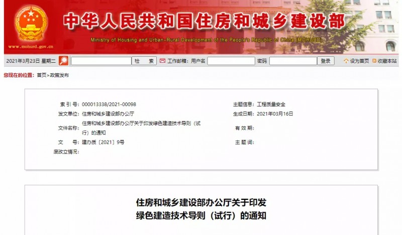 国家在落实绿色发展理念方面动作频频。为贯彻落实绿色发展理念、推进绿色建造、提升建筑工程品质、推动建筑业高质量发展,住房和城乡建设部组织编制了《绿色建造技术导则(试行)》,并于近日印发。