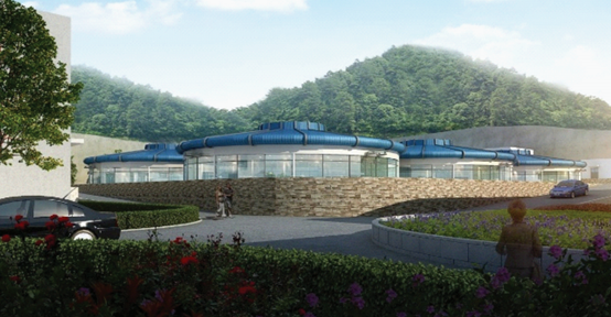 为避免对山体景观遮挡,厂区构筑物布置形式考虑在半地下下沉式方案与全地下式方案之间选择。结合本项目地勘报告厂区南侧山前,浅层岩性为强风化玄武岩,其他范围内土层从上到下为人工堆积土、混合土。如采用全地下式方案将增加玄武岩爆破量及支护难度。鉴于全地下式的构筑物顶端需要一定厚度的覆土用于绿化,增加的覆土荷载,对地下空间的支撑体系影响较大,消防安全设施较多,工程投资及运行成本较高。对比全地下式布置,半地下下沉式运行维护相对便捷,工程投资及运行费用较低,因此,经技术经济比较后选用半地下下沉式方案。