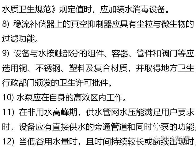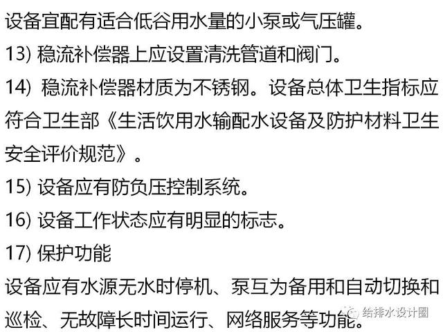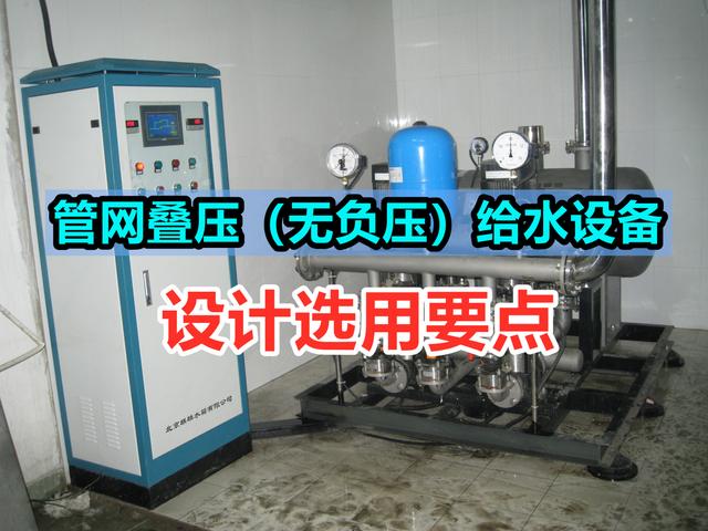 1)管网叠压(无负压) 给水设备与之连接和取水的供水管网应该水量充裕、水压稳定,设置前应经地方自来水公司同意。