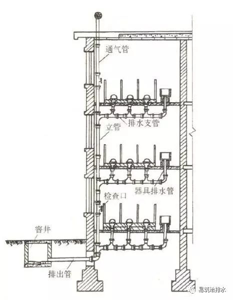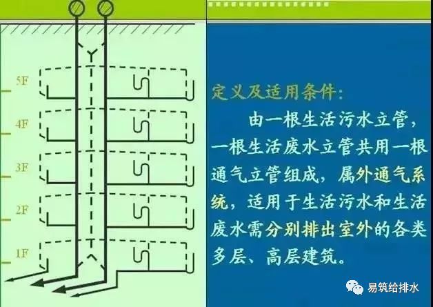 建筑内部污废水排水管道系统按排水立管和通气立管的设置情况分为: