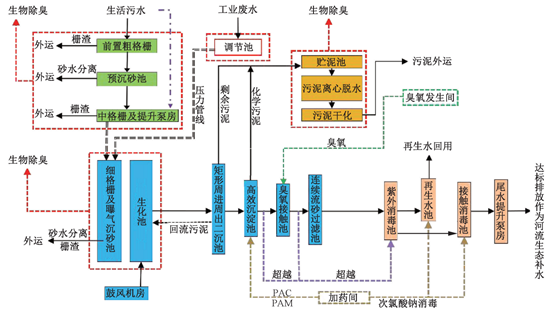 本项目采用规范要求的计算方法对生化池进行计算,然后在BioWin软件中按照计算参数和水力流程建立模型进行参数模拟。