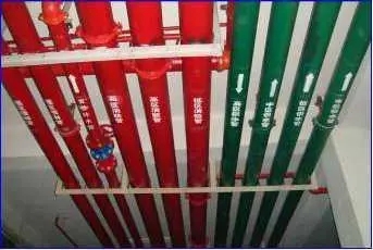屋面、管道井、技术层、地下车库、机房、泵房等部位,主干管上标识不清楚、不整齐(文字、流向、颜色或色环)。