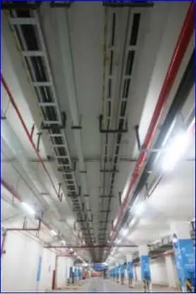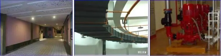管道井支架平直牢固,根部处理精细,灯具、喷淋美观