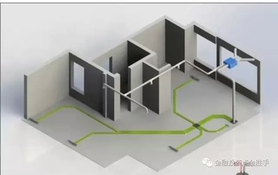 管道布线分顶上和地下两种,顶送风的管道使用圆管,地送风的管道使用扁管。过渡连接时使用斜三通或45度弯头.html'>弯头新风系统布管原则尽量缩短管线,减少分支管线,避免复杂的局部构件,以节省材料减少局部风阻。管道尽量避免直角安装,连接管件可以使用Y字型斜三通,或使用两个45度弯头平缓过度。