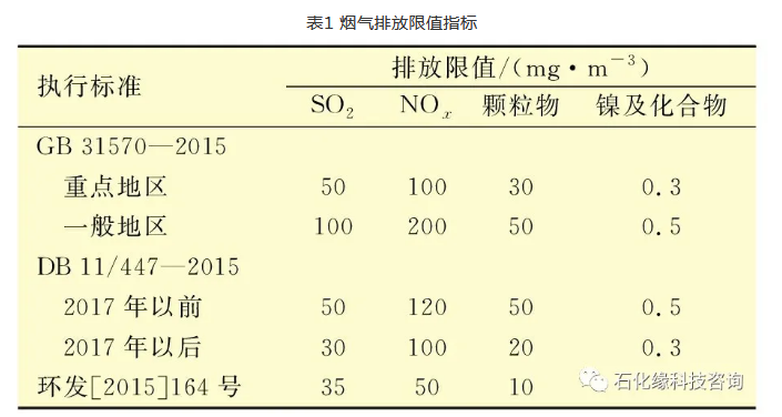 与此同时,国家和地方政府不断出台更加严格的环保排放标准,对烟气排放的限值提出更为严苛的要求,具体烟气排放限值如表1所示。
