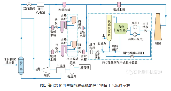 中国石油化工集团公司(中国石化)针对催化裂化再生烟气的特点,集成火电和钢铁行业半干法烟气超低排放治理经验,联合福建龙净环保股份有限公司开发了适用于催化裂化再生烟气脱硫除尘的FSC负压式循环流化床半干法(FSC半干法)超低排放处理工艺,实现了“源头控制”和“末端治理”的良好结合。