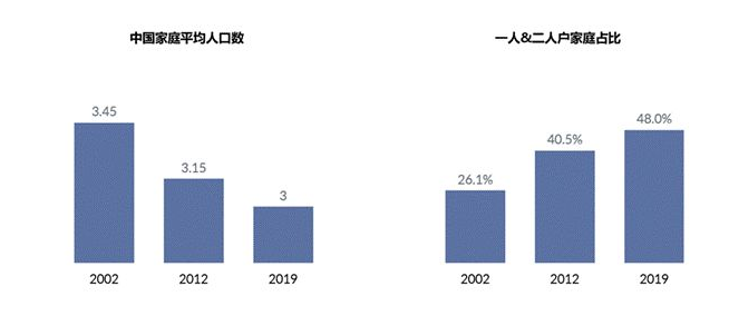 中国的家庭结构也发生巨大变化,“小家”将是未来趋势,适合“小家”的换新需求将会大量出现。尽管国家已放开二胎,但孩子的抚养成本和教育成本越来越高,导致生娃的意愿快速下降,家庭平均人口降至3人,也就是典型的一对父母加一个小孩,而1人和2人户的家庭比重呈现快速上升的趋势,2019年接近一半的家庭是1人或2人户,相比17年前接近翻了一倍。这种家庭结构的变化,会对需求产生巨大的影响。大家庭的主要需求是满足多人的共同需要,小家庭的主要需求更多偏向更细化的、更高品质的需求。所以细分市场的产品大受欢迎,以针对1人和2人家庭的小容积电饭煲为例,在2020年3L以下电饭煲市场占比约15%,同比增速高达54%,这种因为家庭结构带来的换新需求将会大量出现。