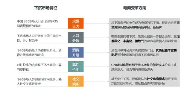 互联网巨头们视下沉市场为互联网行业“最后的流量红利”,一路开疆拓土、高歌猛进,深刻改变了下沉市场的消费生态与商业格局,深刻改变了下沉市场的消费生态与商业格局,以小镇青年为典型代表的下沉市场用户表现出惊人的消费能力和潜力,在零售价值链上的话语权不断提升,同时表现出鲜明个性化需求。