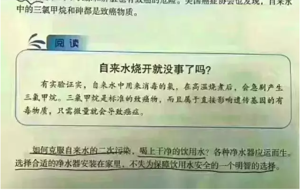 不要拒绝净水概念!湘教版《生态文明教育》中告诉我们:自来水存在着二次污染的问题,自来水管道在运送水的过
