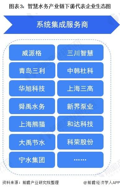 在产业链下游领域,智慧水务系统集成服务商典型代表包括威派格、上海熊猫、青岛三利、中韩杜科、舜禹水务、新界泵业、三川智慧、华旭科技、上海三高等,其中,中韩杜科、新界泵业、华旭科技、三川智慧等厂商在水表、水泵等设备监控系统方面具有技术发展优势,威派格、青岛三利等厂商在二次供水设备方面处于领先地位,上海三高由水务管理软件服务商逐步发展成智慧水务系统集成服务商。