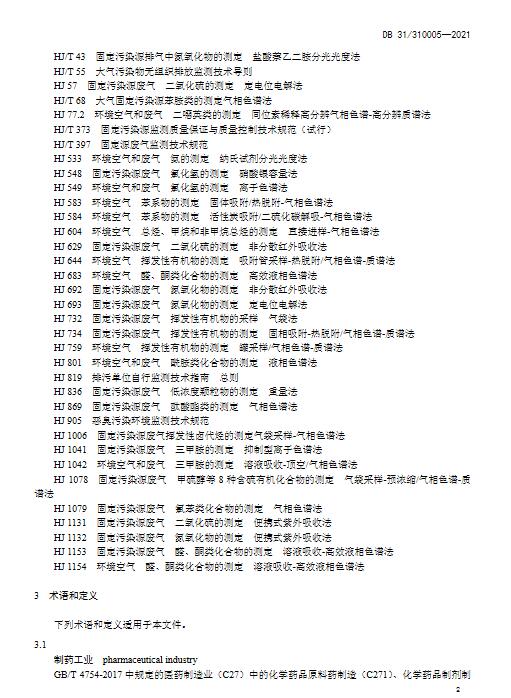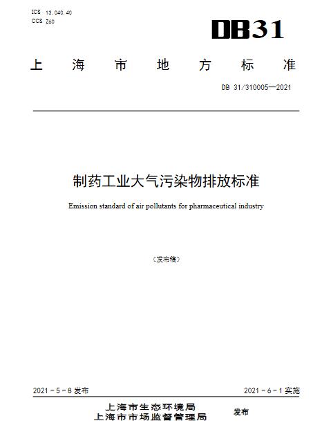 日前,上海发布地方标准《制药工业大气污染物排放标准》(DB31/310005-2021)。标准于2021年6月1日实施。
