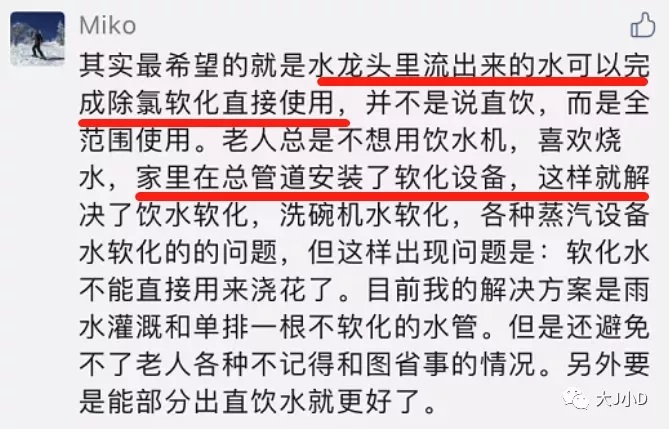 正好春节前我家装了净水器,我觉得正适合她家这种情况,推荐她安装了,解决了她家的麻烦。