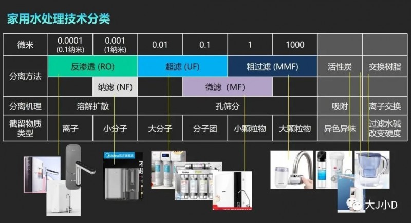 6.【RO反渗透净水】,过滤粒径在0.0001微米(0.1纳米),感觉就是“简单粗暴”啊,可以去除水以外的杂质,净化出纯净水,包括细菌、病毒、重金属、抗生素这些水污染都会被过滤掉,是目前家用净水更成熟和安全的技术,也是最“方便”的技术。