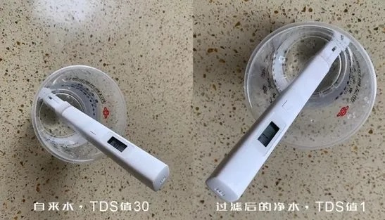 ▲ 净水前后TDS数据对比,数值越低代表水质越好