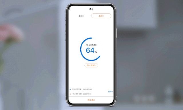 高端净水机一般都配置了手机APP实时监控功能,APP会提醒你什么时候换滤芯,不费脑又不费钱。