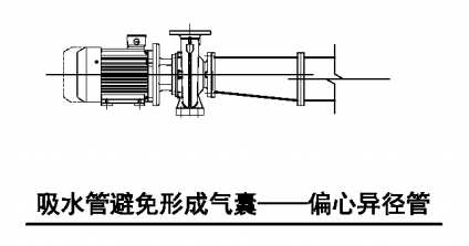 7 吸水管水平管段上不应有气囊和漏气现象。变径连接时,应采用偏心异径管件并应采用管顶平接。